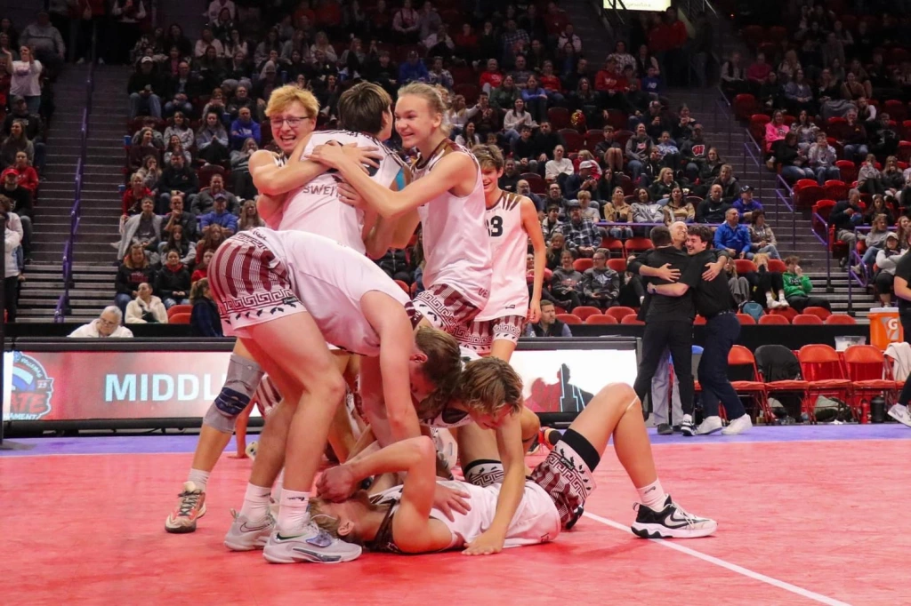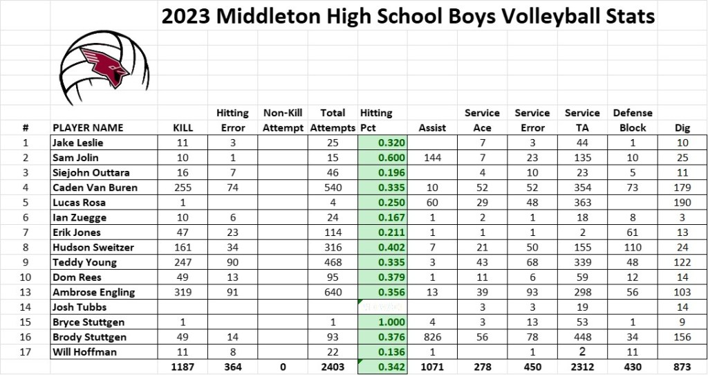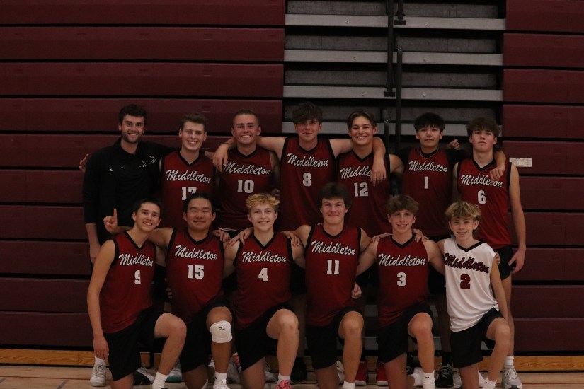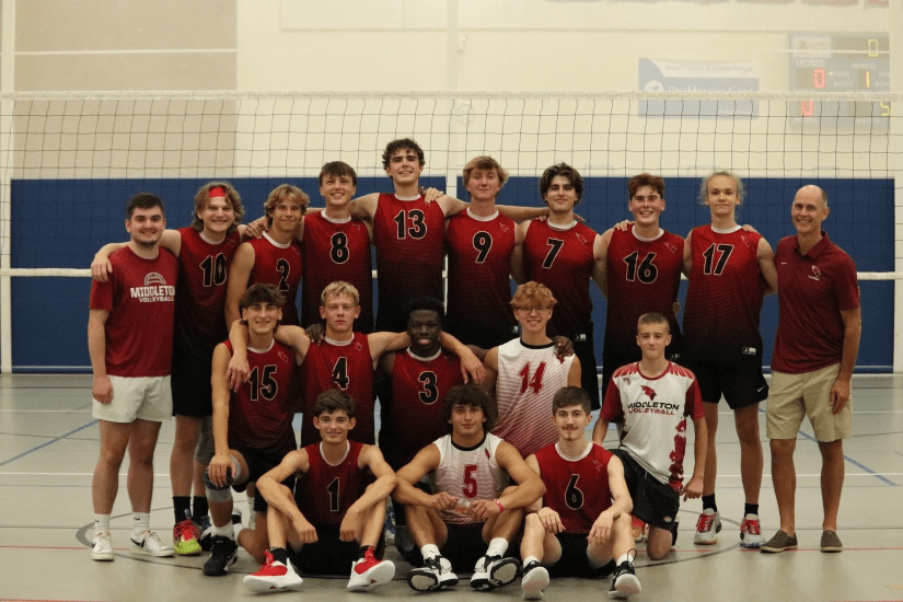 2023 Middleton Varsity TeamRaising the Gold BallAmbrose Engling going for the kill Caden Van Buren with the attack from the back rowVarsity SeniorsVarsity SophomoresState win celebrationMore celebrationMiddleton Coaches